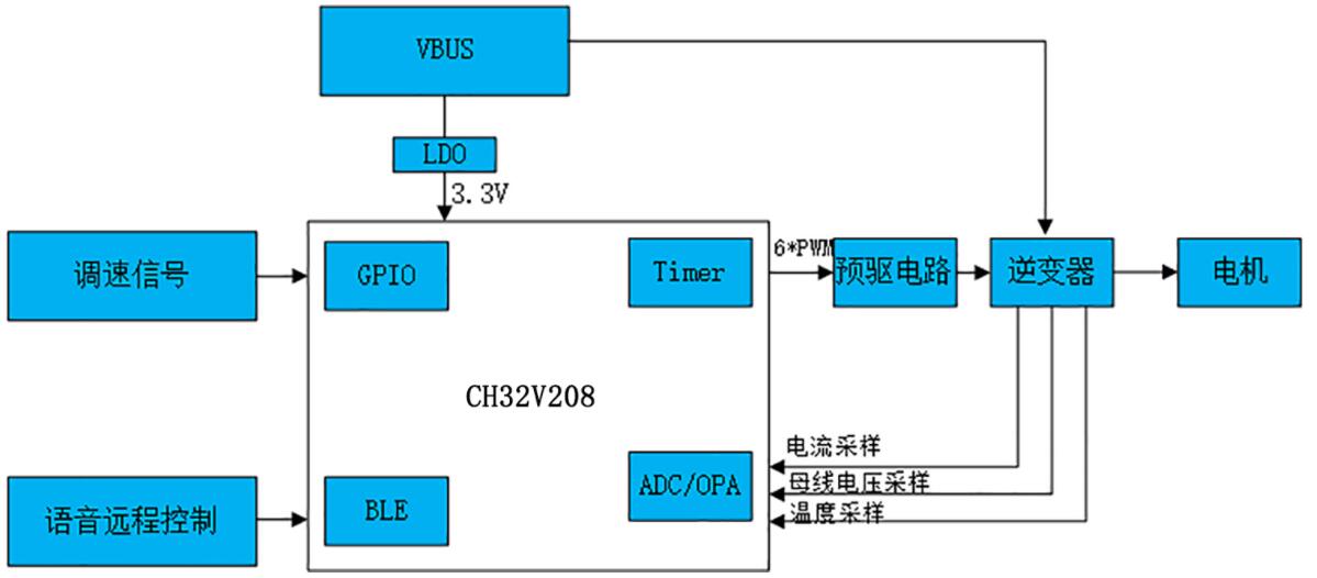 CH32V208采用RISC-V青稞V4微處理器,內置高速存儲器,最高工作頻率可達144MHz,集成12Bits高速ADC,針對電機應用內置雙路模擬運放比較器,豐富的I/O端口和多種外設,支持USART,USB,I2C,SPI,多種芯片規格,滿足不同場景需求,具有低功耗藍牙V5.3。