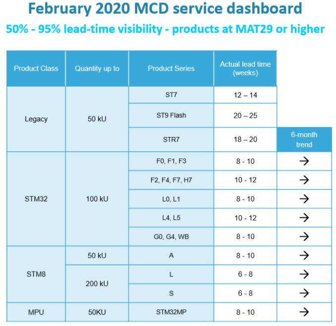 從ST最新發(fā)布的產(chǎn)品交期表來看,很多產(chǎn)品的交期確實(shí)有變長的趨勢。但是正常排單的客戶,交貨受影響還是比較小的。考慮到疫情可能帶來的上下游產(chǎn)業(yè)的影響,大家還是盡早排單吧.意法半導(dǎo)體MCU代理商英尚微電子已為物聯(lián)網(wǎng),5G,汽車行業(yè)等應(yīng)用領(lǐng)域提供了大量優(yōu)質(zhì)可靠的MCU產(chǎn)品.