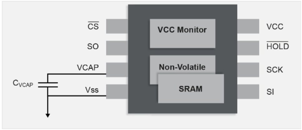 串行SRAM,在器件內部的每個單元中都包含非易失性晶體管。與NVSRAM不同,它不需要外部電池。它使用一個小的外部電容器來提供當系統斷電時將SRAM的內容移動到非易失性單元所需的能量,這是通過IC監視公共集電極上的電壓并自動處理SRAM和SRAM之間的數據移動來實現的。必要時使用非易失性存儲器。