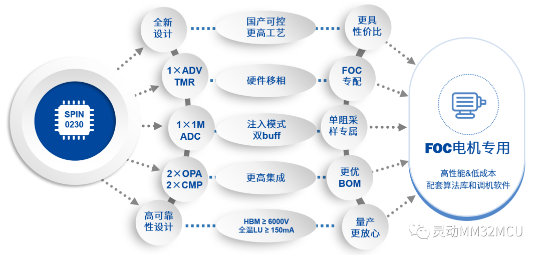 國產(chǎn)單電機(jī)控制32位電機(jī)MCU靈動微MM32SPIN0230
