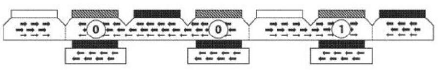 為了寫入單個(gè)位,電流通過存儲線,并且多鐵性元件和自由層的相互作用確定層之間的反平行極性為“ 1”(高電阻),層之間的平行極性為“ 0” (低電阻)。然后,通過減小存儲線和多鐵性元件之間的交換偏壓來更改存儲域的磁化強(qiáng)度(請參見上圖)。存儲器域是可獨(dú)立寫的,只需要一個(gè)電流輸入即可存儲數(shù)據(jù)。這大大降低了能耗和寫入周期所需的時(shí)間,從而提高了成本和性能效率。