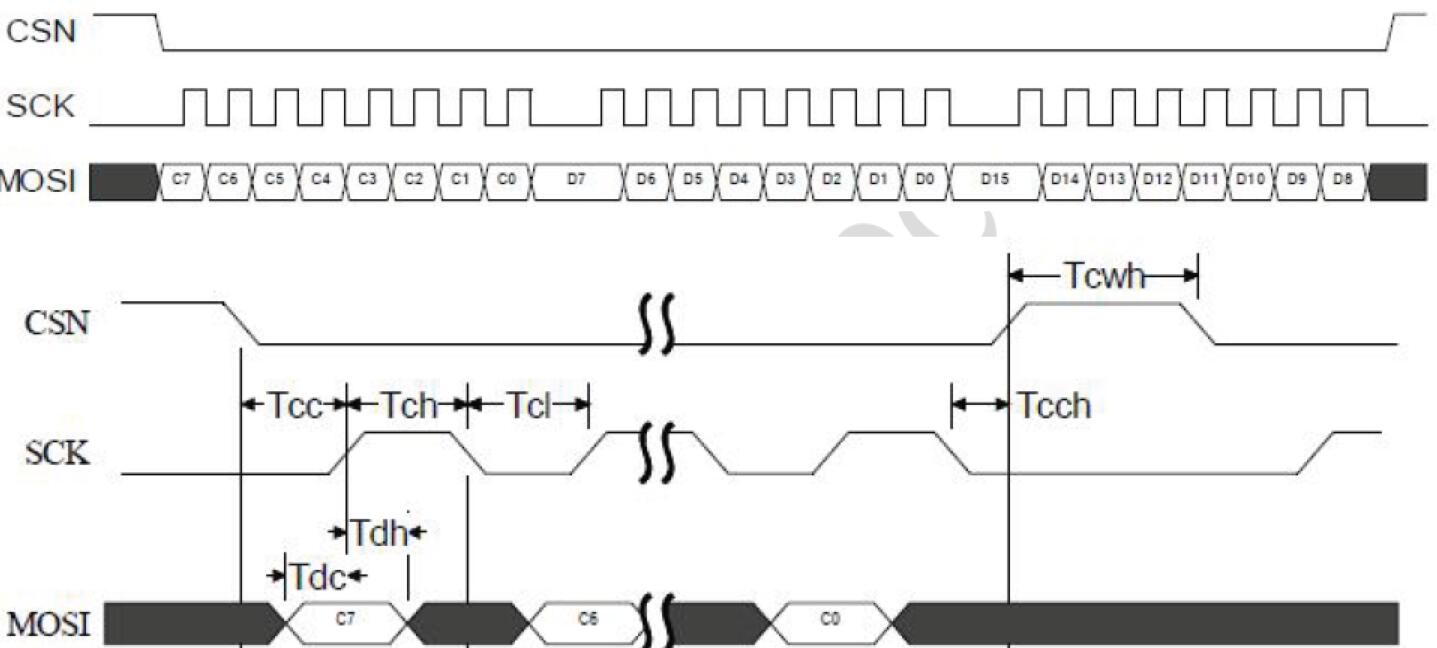 其中MOSI 信號(hào)用于輸入和輸出。MCU 可以用3 個(gè)GPIO 模擬SPI,我們提供3 線SPI 的參考C 源碼。